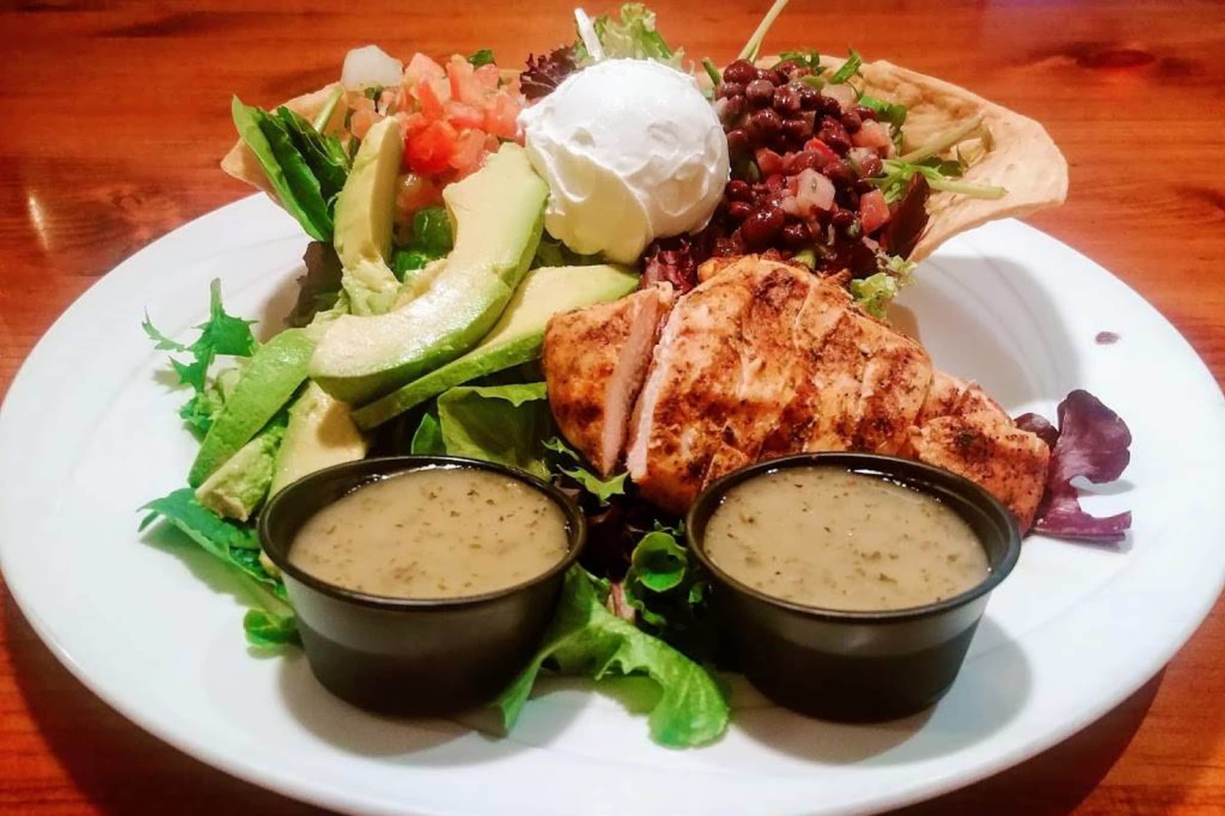 TOASTED JALAPEÑO CHEDDAR TORTILLA WITH CHICKEN CHEDDAR-JACK CHEESE PEPPER-JACK CHEESE AND BACON WITH A SIDE OF LETTUCE TOMATO SALSA. 1100 AM - 1030 PM. Get any of the above sauces on the side during our special.